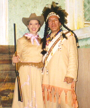 If there's a problem with 'Annie Get Your Gun,' it's the stereotyping of American Indians, Native Americans. There are some pretty cheesy jokes and attitudes about Indians of Buffalo Bill's Wild West Show. But the material is fairly gentle, and the setting is, after all, 1880. Ironically, it's the quality playing of Sal Giacchi as Chief Sitting Bull which lifts the threat of pall from this production. Sal not only looks like an Indian Chief who could have routed General Custer, he brings his class and dignity to even the comic portions of the role.