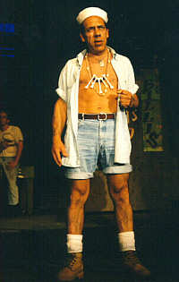 Sal Giacchi, who bears an eerie resemblance to the original Luther Billis, Myron McCormick, is gruff as the comical seaman who leads the antics of the woebegone enlisted men. The gob's scene, featuring 'Bloody Mary' and 'Nothing Like a Dame' is stirring... Go see it.